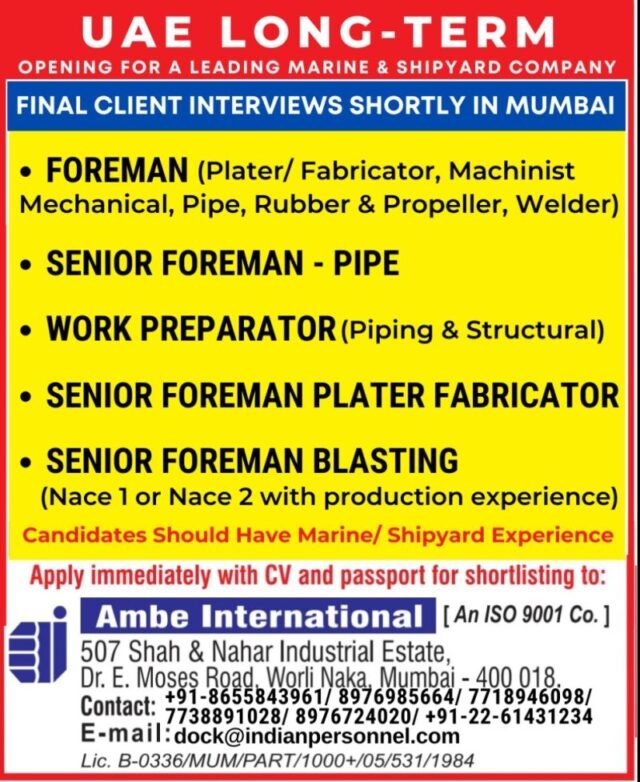 | Foreman (Plater, Fabricator, Machinist, Mechanical, Pipe, Rubber & Propeller, Welder)) | ||