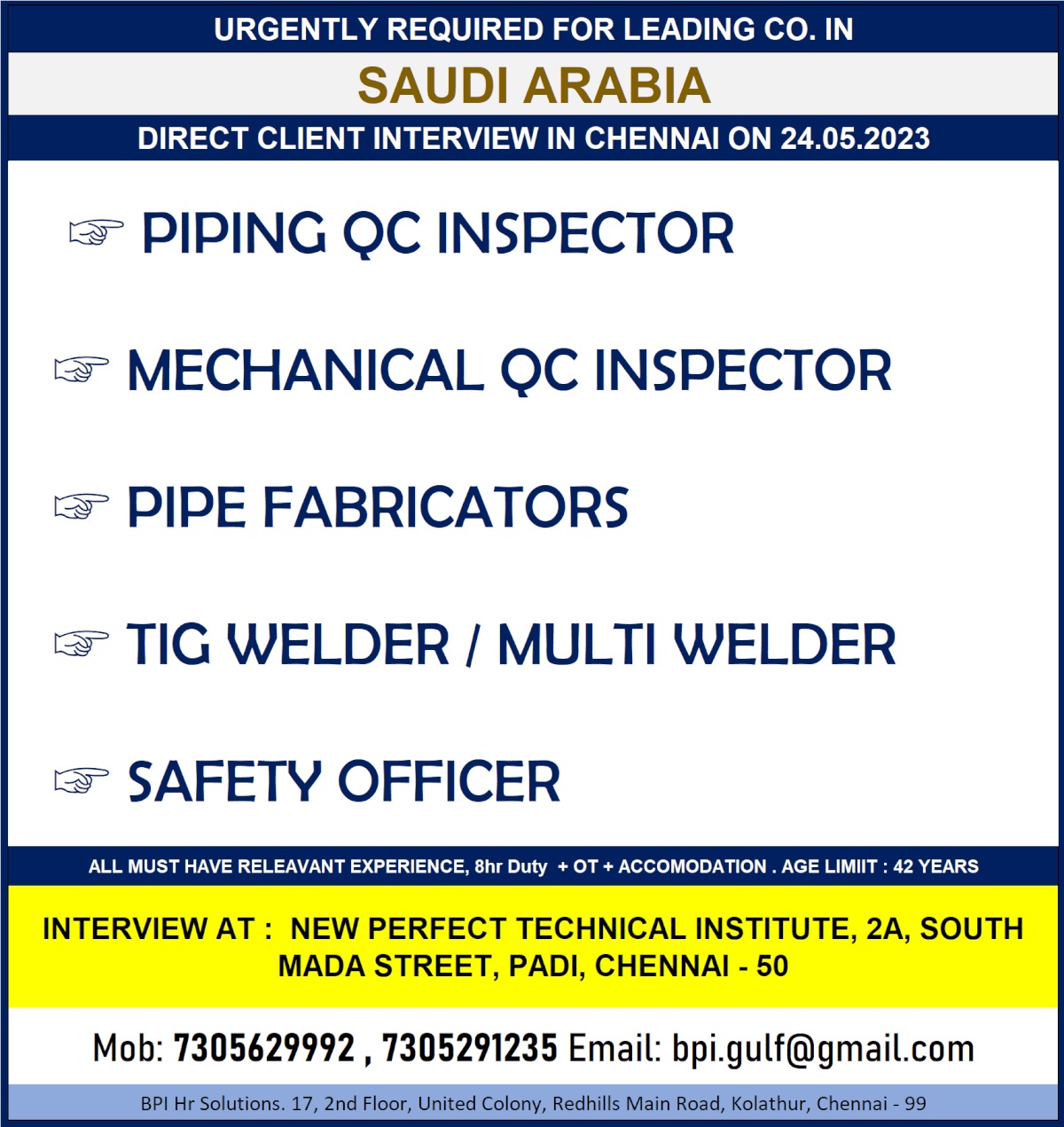 Email: bpi.gulf@gmail.com / 7305629992, 7305291235