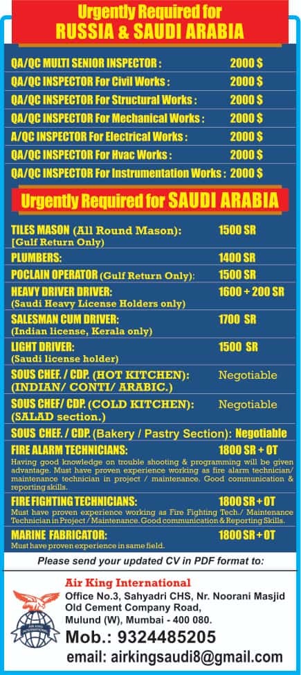 Email: airkingsaudi8@gmail.com / 9324485205