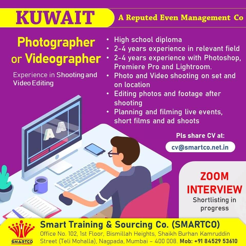 Photographer/ Videographer job in Kuwait - Event Management Company.