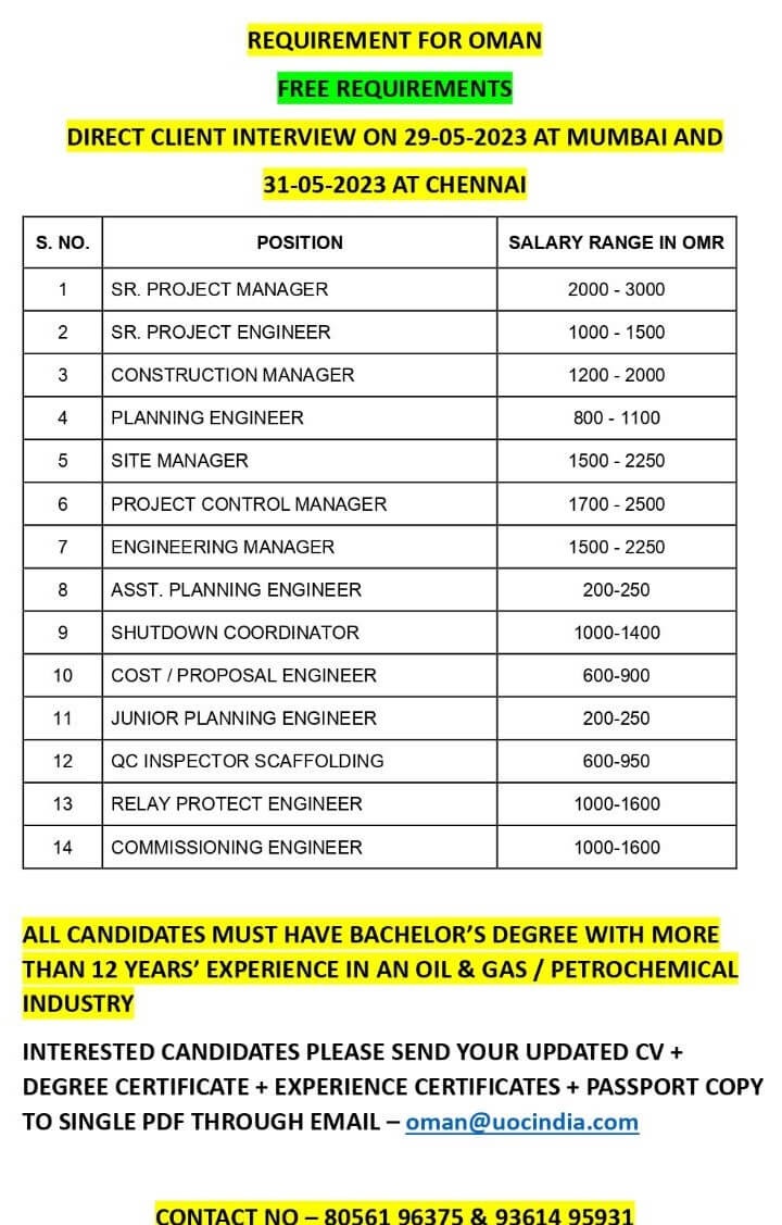 All Candidates must have Bachelor's Degree with more than 12 years experience in an Oil & Gas / Petrochemical Industry.