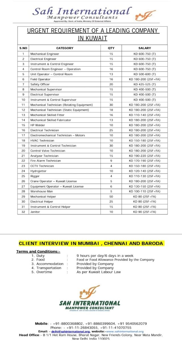 Kuwait job vacancy 2023 for Indian - Large recruitment