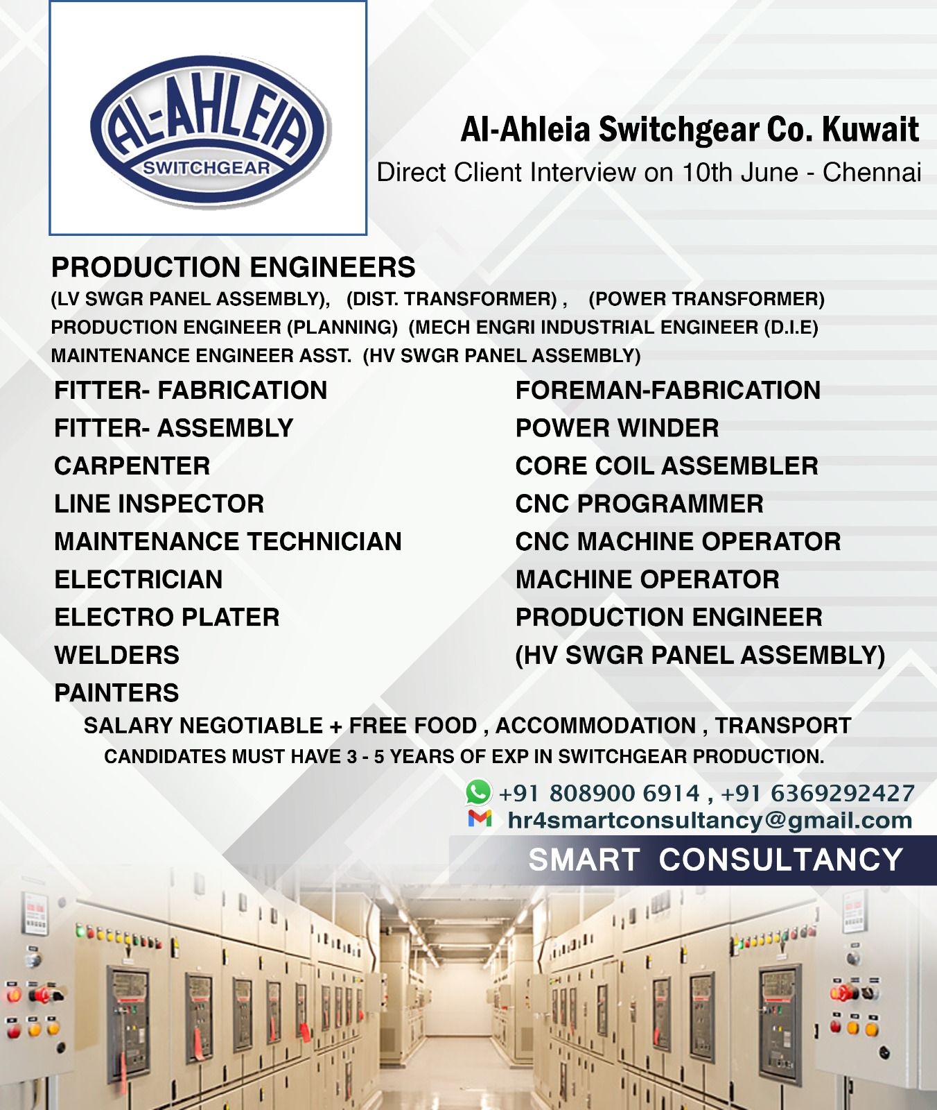 Al-Ahleia Switchgear company vacancy - Hiring for Kuwait