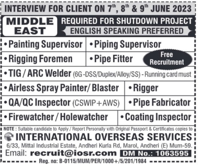 Shutdown Project - Free recruitment to Middle east