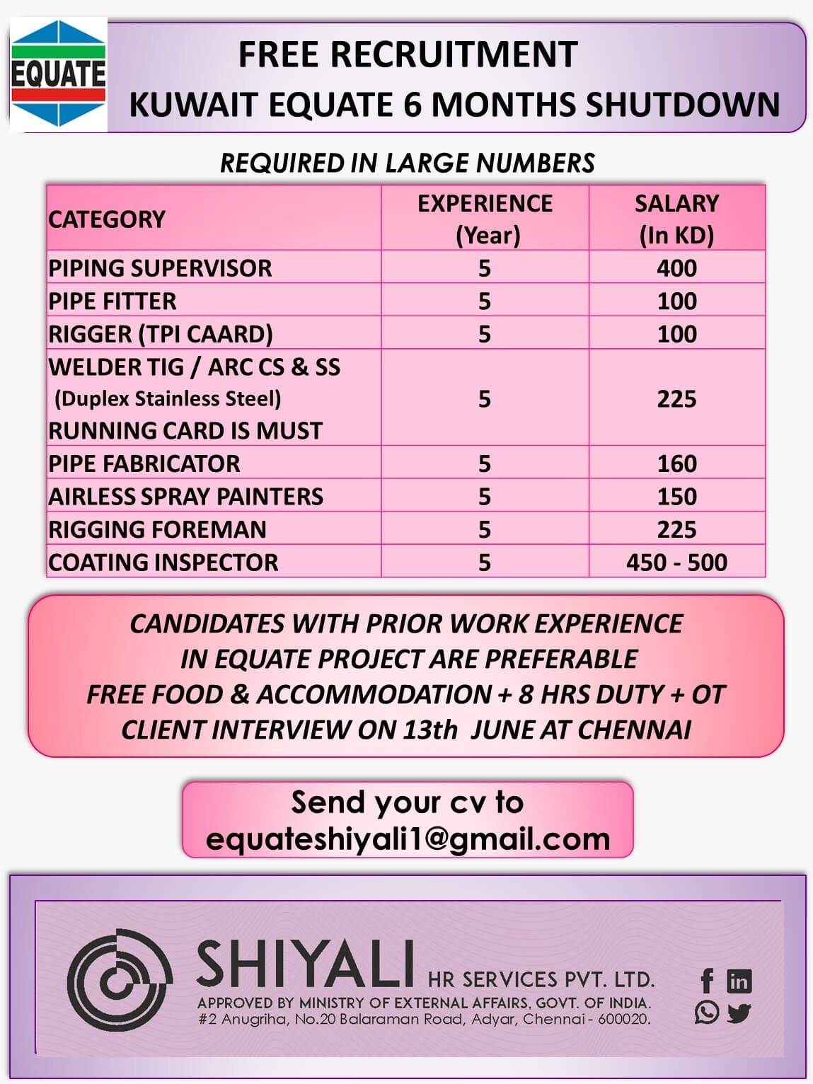 Equate shutdown interview 2023 - Free recruitment to Kuwait