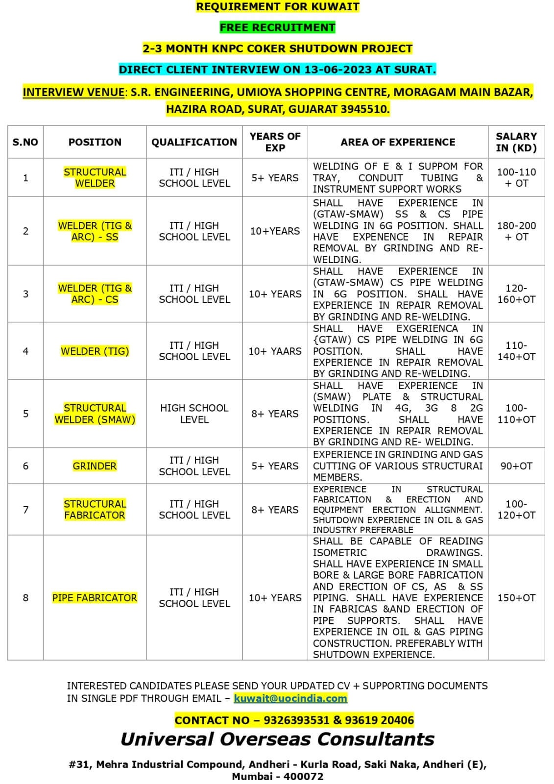 KNPC Coker Shutdown Project - Free recruitment to Kuwait