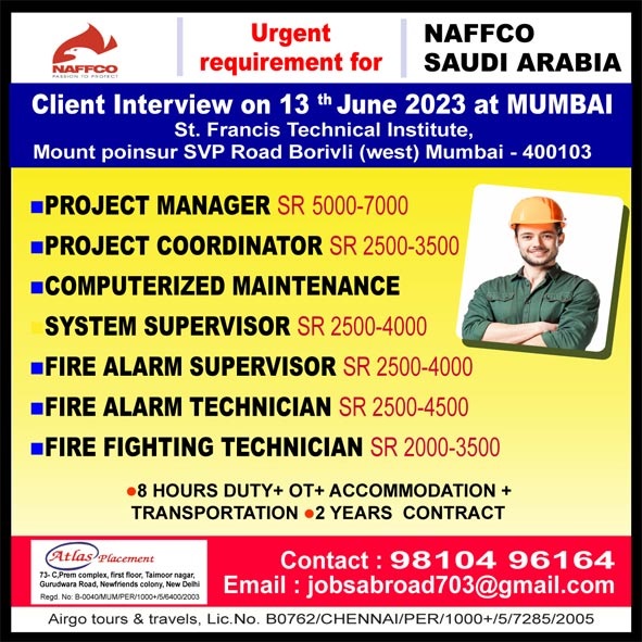 NAFFCO Saudi Arabia Jobs - Walk in Interview