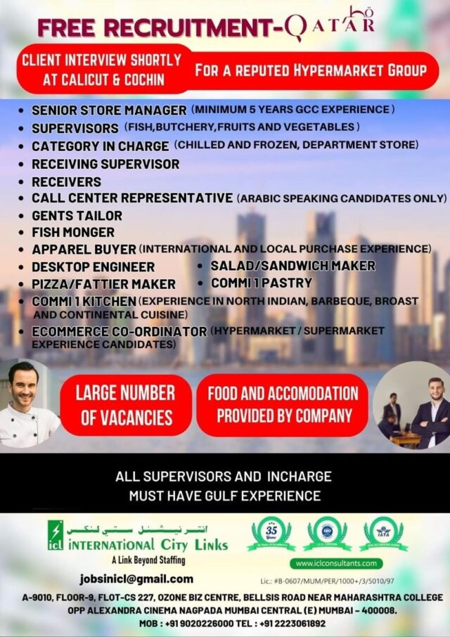 Hypermarket Jobs in Qatar - Free recruitment