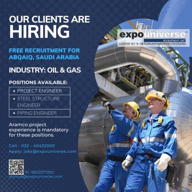 Free recruitment for ABQAIQ Saudi Arabia - Oil & Gas Project