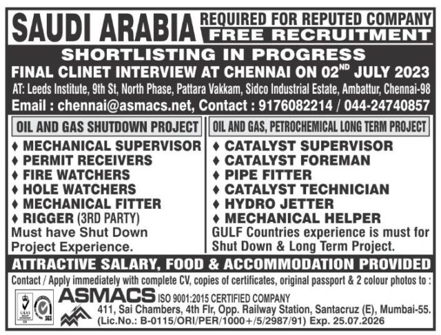 Disclaimer:- GCCWALKINS have no involvement in any recruitment process, This website just sharing job vacancies & interviews from various sources. Applicants are advised to research the bonafides of the prospective employer independently. We do NOT endorse any requests for money payments and strictly advice against sharing personal or bank related information. If you suspect any fraud or malpractice, email us at gccwalkins@gmail.com