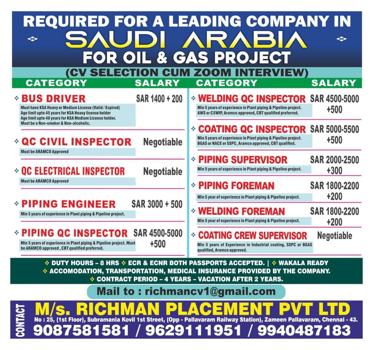 Oil and Gas jobs in Saudi Arabia 2023 - Urgently required
