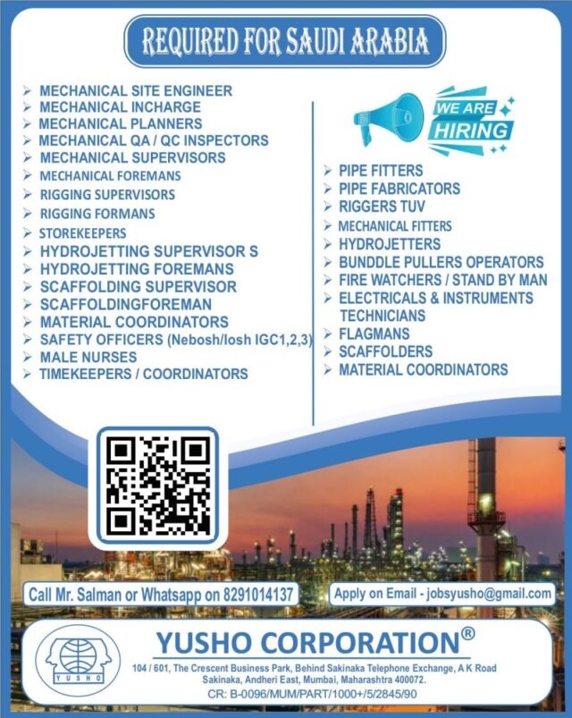 Email: jobsyusho@gmail.com / Mr. Salman 8291014137