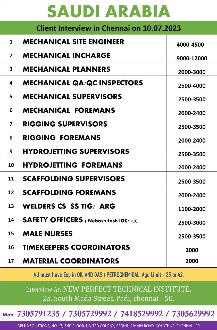 | Mechanical Supervisors | 3500 SAR | |