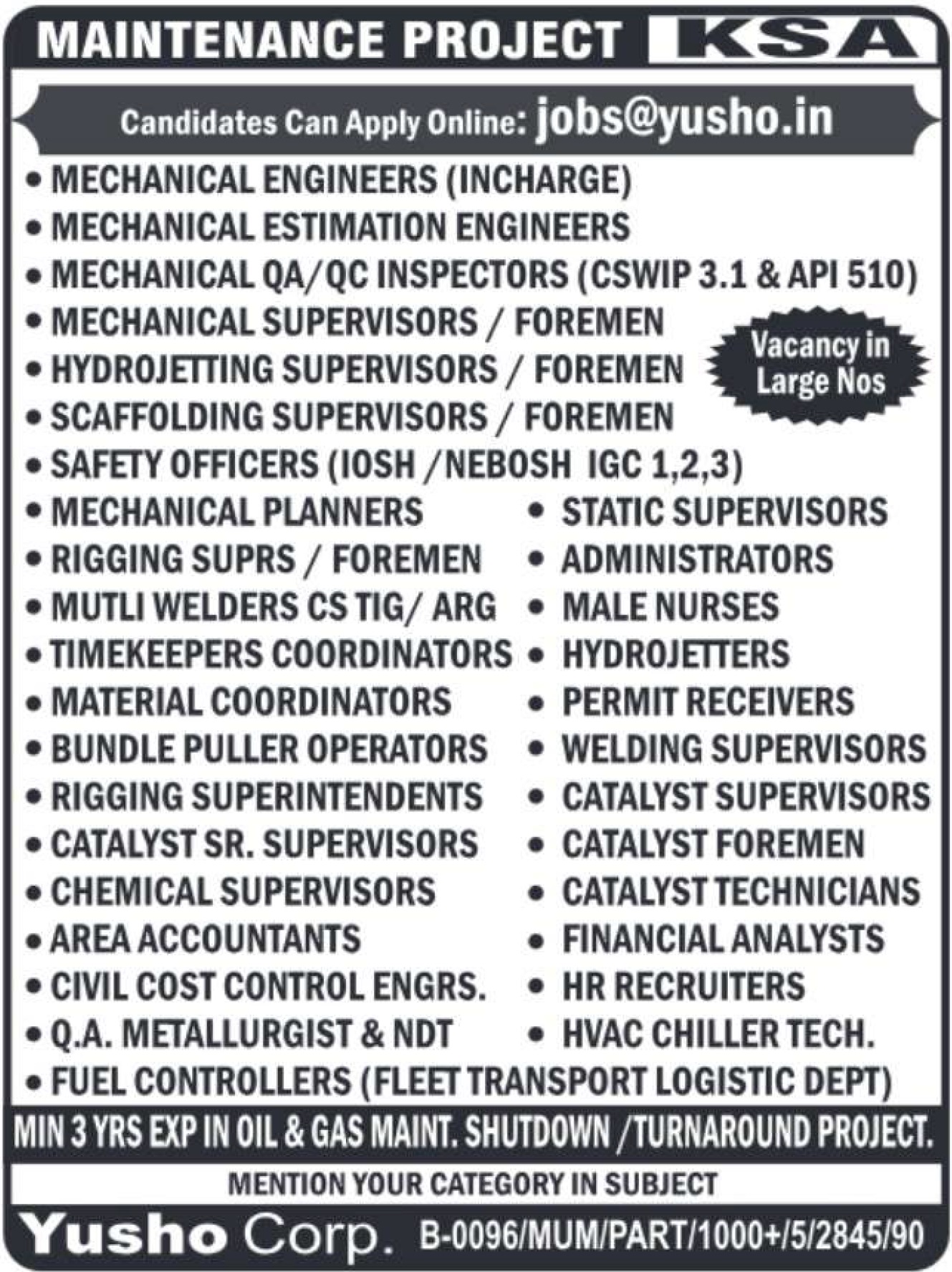 Saudi Arabia job Vacancy 2023 - Large recruitment to Maintenance Project