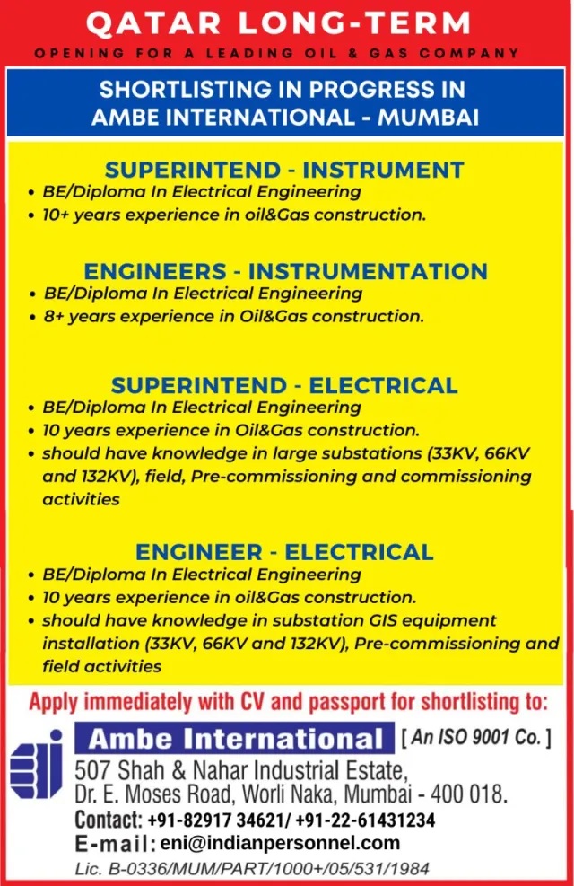 Email: eni@indianpersonnel.com / Contacts : 8291734621, 022-61431234
