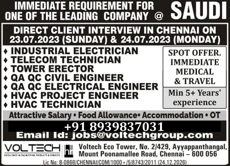 Email: jobs@voltechgroup.com / Contacts : 8939837031