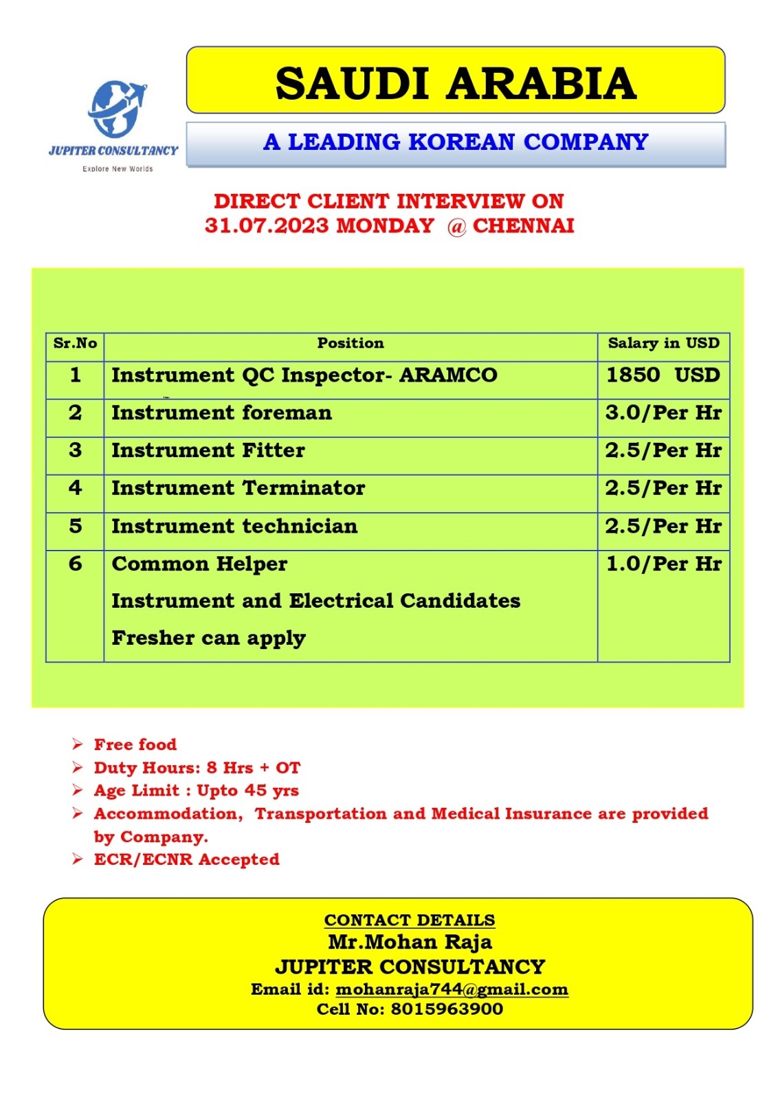 Instrumentation Jobs in Saudi Arabia - Direct Client Interview