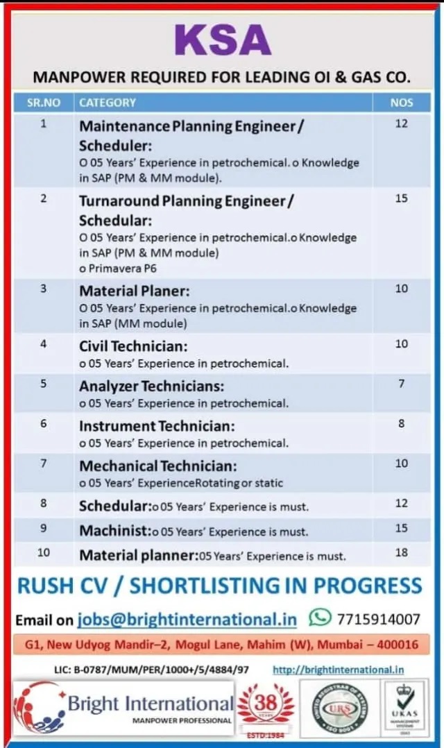 Email: jobs@brightinternational.in / Contacts : 7715914007