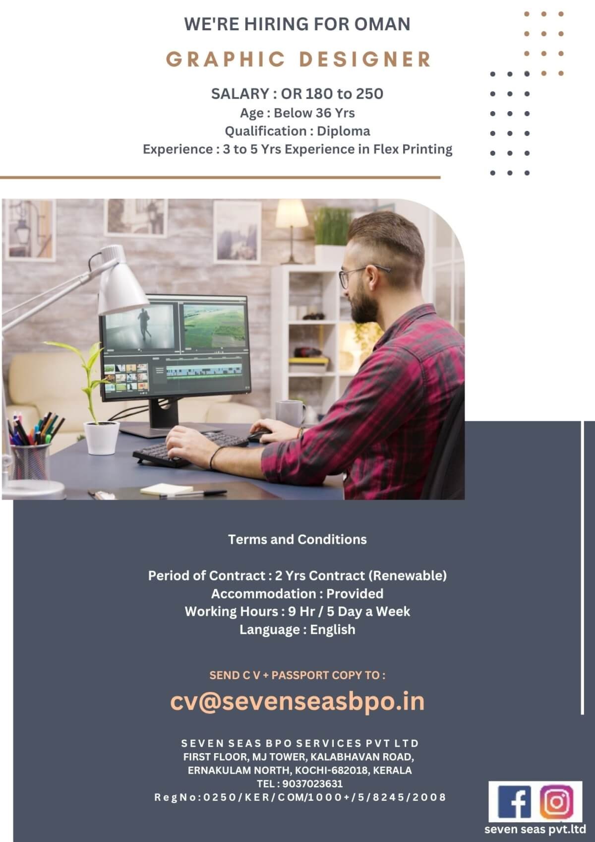 Candiates have 3 to 5 years experience in Flex Printing. Age below 36 years, Qualification : Diploma, 9 hours duty / 5 day week, Language : English
