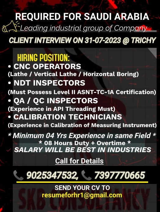 | CNC Operators (Lathe/Vertical Lathe/Horizontal Boring) | ||