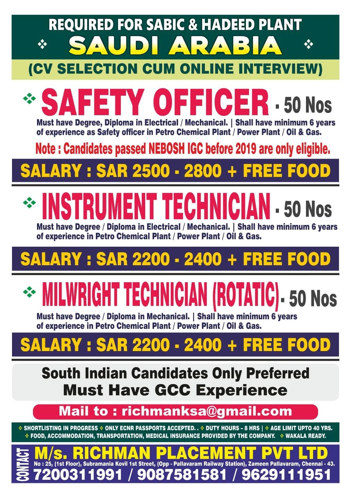 Wanted for Saudi Arabia - Sabic & Hadeed Plant