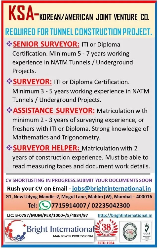 Civil Surveyor Jobs in Saudi Arabia - Korean/American Joint Venture Company.