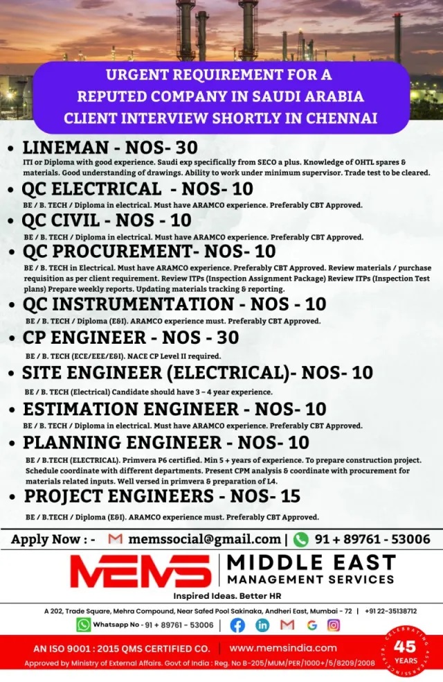 Disclaimer:- GCCWALKINS have no involvement in any recruitment process, This website just sharing job vacancies & interviews from various sources. Applicants are advised to research the bonafides of the prospective employer independently. We do NOT endorse any requests for money payments and strictly advice against sharing personal or bank related information. If you suspect any fraud or malpractice, email us at gccwalkins@gmail.com