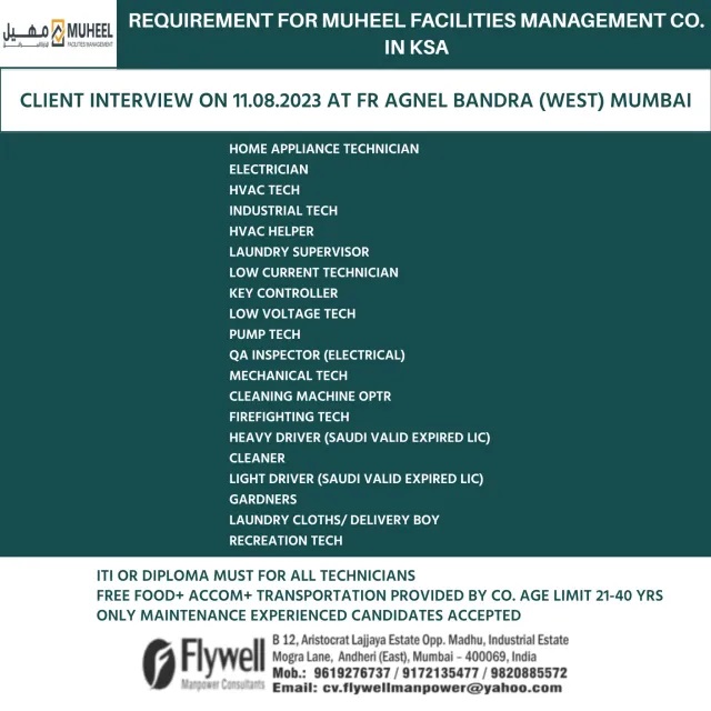 Muheel facilities management jobs - Hiring for Saudi Arabia