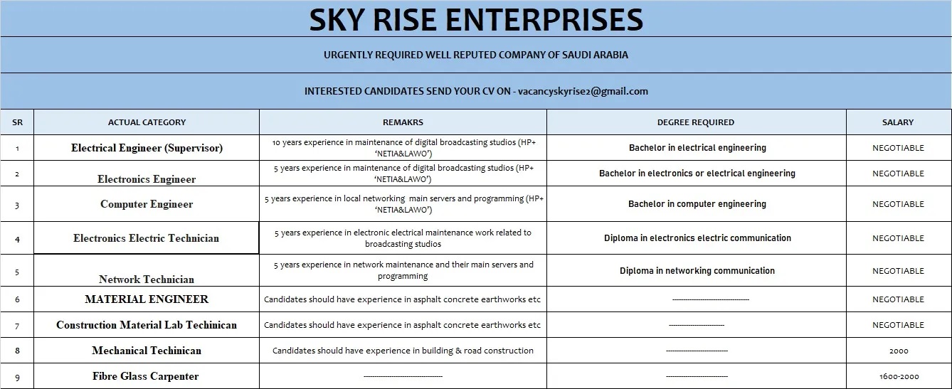 | Electrical Engineer (Supervisor) | Negotiable | |