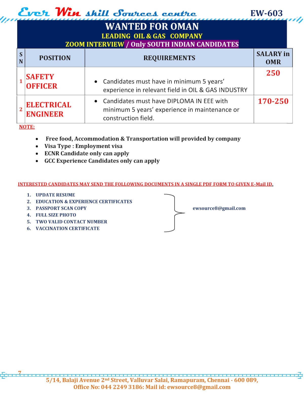 | Safety Officer | 250 OMR | |