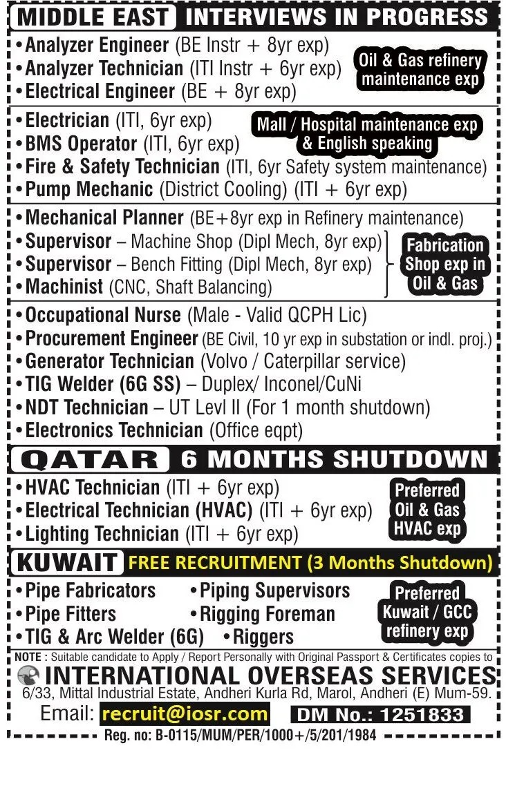 Job Location: Saudi Arabia, Kuwait, Qatar,