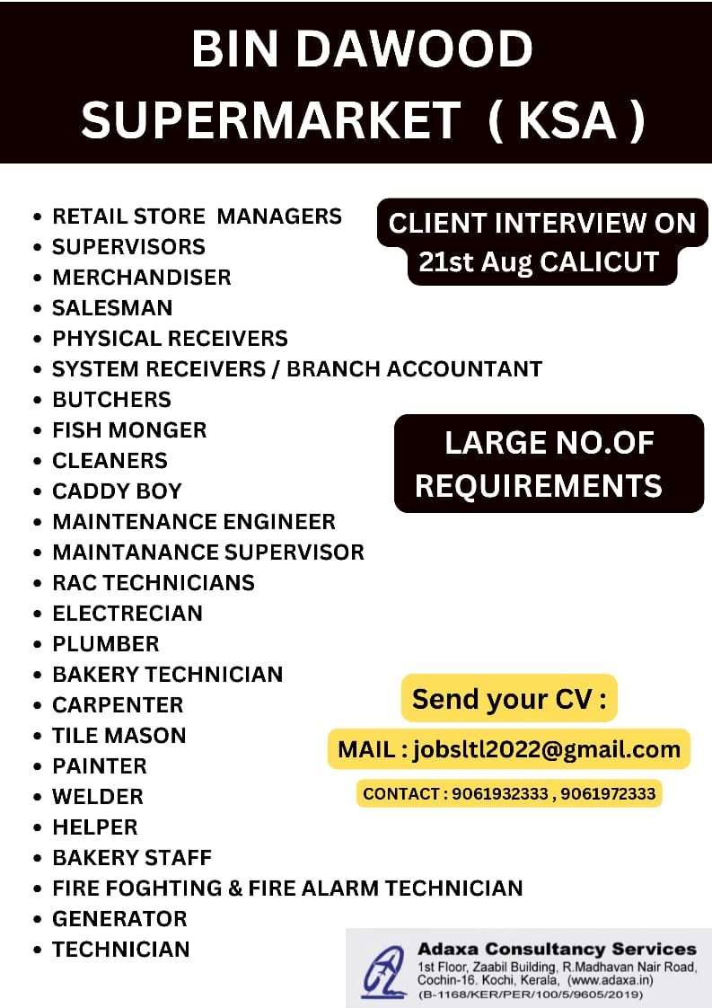Bin Dawood supermarket vacancies - Hiring for KSA