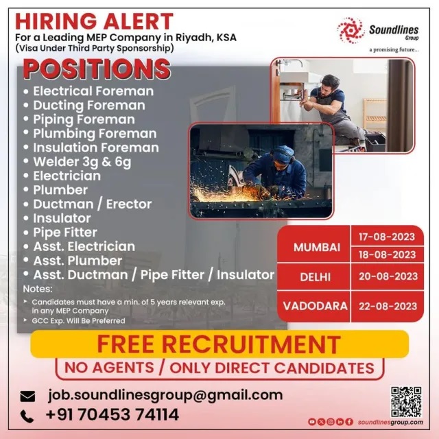 Email : jobs.soundlinesgroup@gmail.com / Contacts : 7045374114