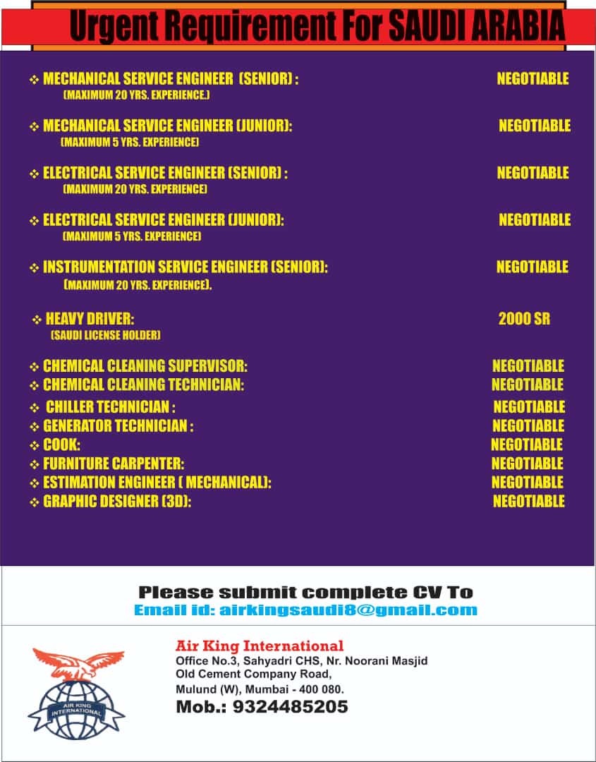 Email : airkingsaudi8@gmail.com / Contacts : 9324485205