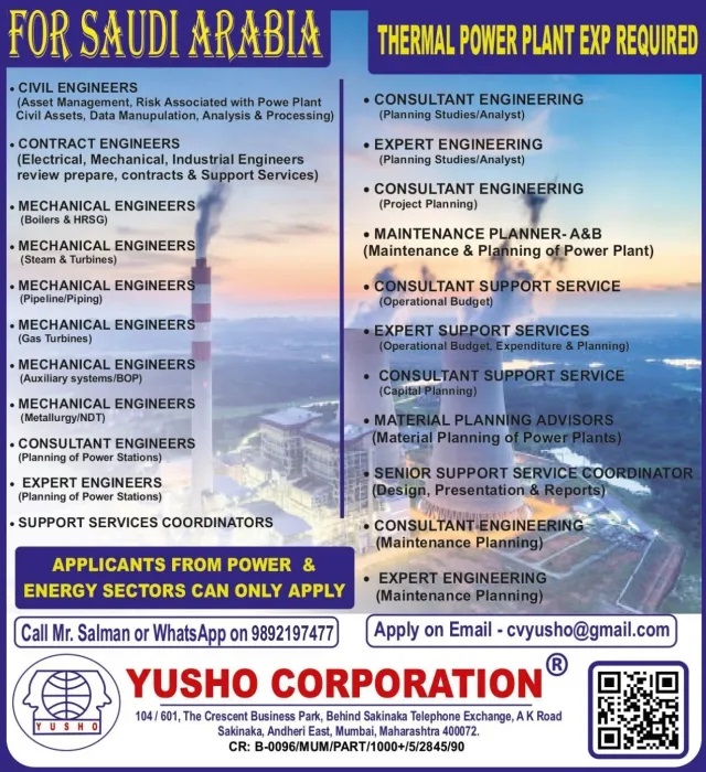 Thermal Power Plant project - Hiring for Saudi Arabia