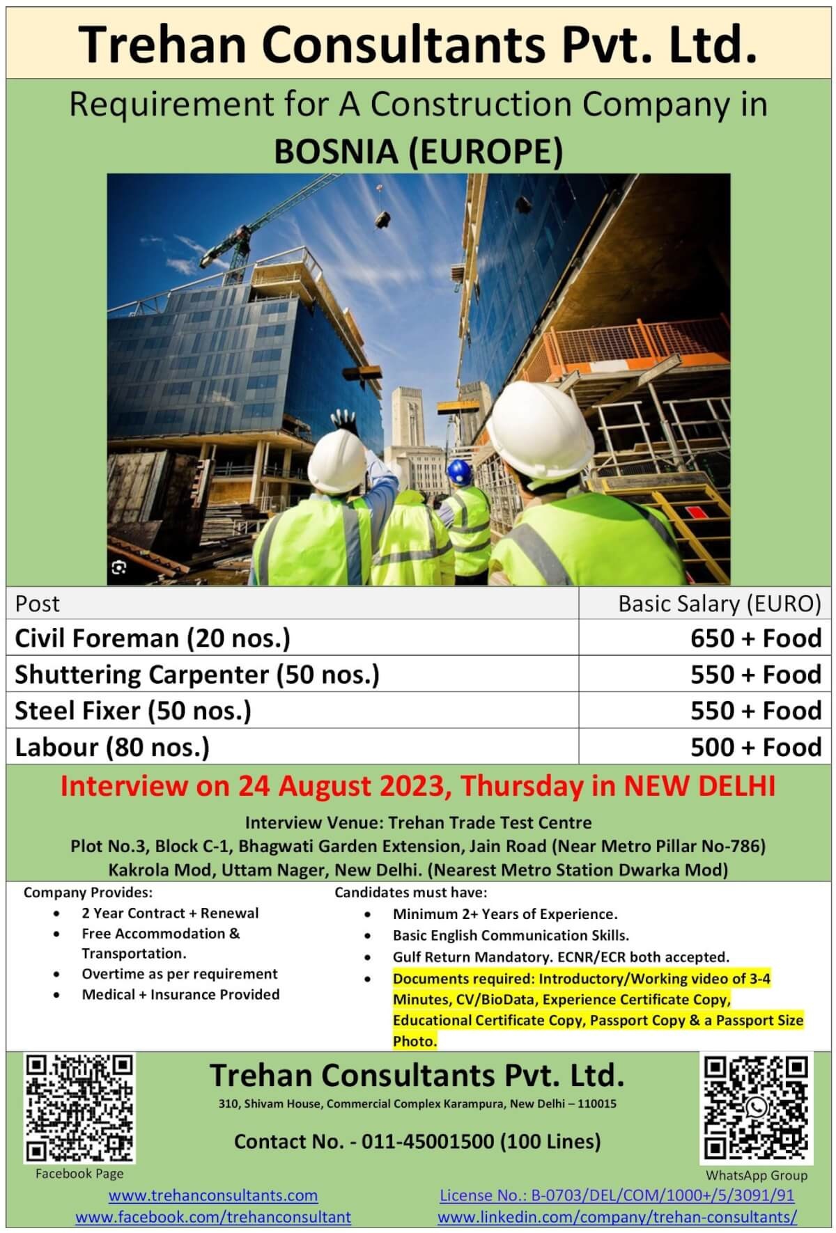 Walk-in-interview on 24th August 2023 at New Delhi : Trehan Trade Test Centre, Plot No: 3, Block C-1, Bhagwati Garden Extension, Jain Road - Near Metro Pillar No - 786, Kakrola Mod, Uttam Nager, New Delhi. (Nearest Metro Station Dwarka Mod)