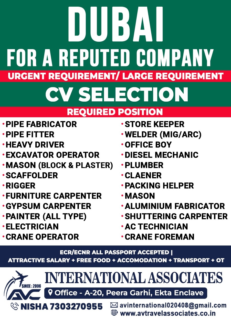 All Candidates having relevant experience in similar industry need to apply. ECR/ECNR All Passport Accepted