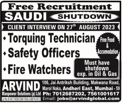 Disclaimer:- GCCWALKINS have no involvement in any recruitment process, This website just sharing job vacancies & interviews from various sources. Applicants are advised to research the bonafides of the prospective employer independently. We do NOT endorse any requests for money payments and strictly advice against sharing personal or bank related information. If you suspect any fraud or malpractice, email us at gccwalkins@gmail.com