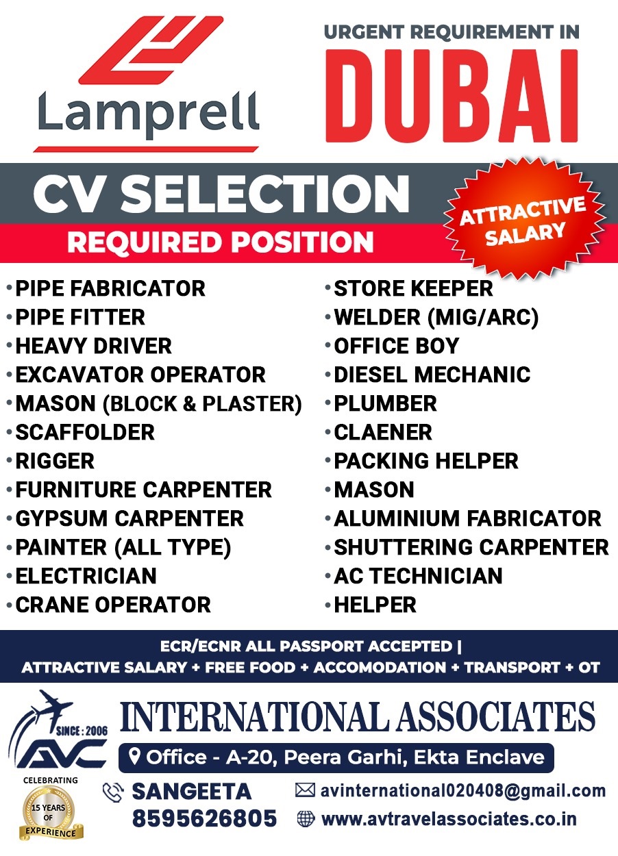 All Candidates having relevant experience in similar industry need to apply. ECR/ECNR all Passporty Accepted.