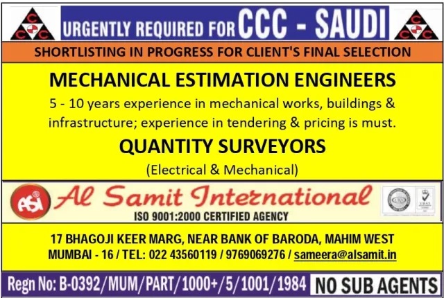 5 to 10 years experience in Mechanical works, building & Infrastructure, experience in tendering & Pricing is must.