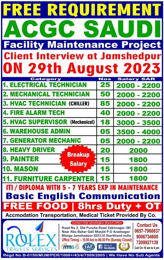 | HVAC Supervisor - Mechanical | 18 | 3500 SAR |