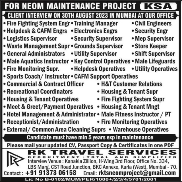 Neom Saudi Arabia jobs - Neom Maintenance Project