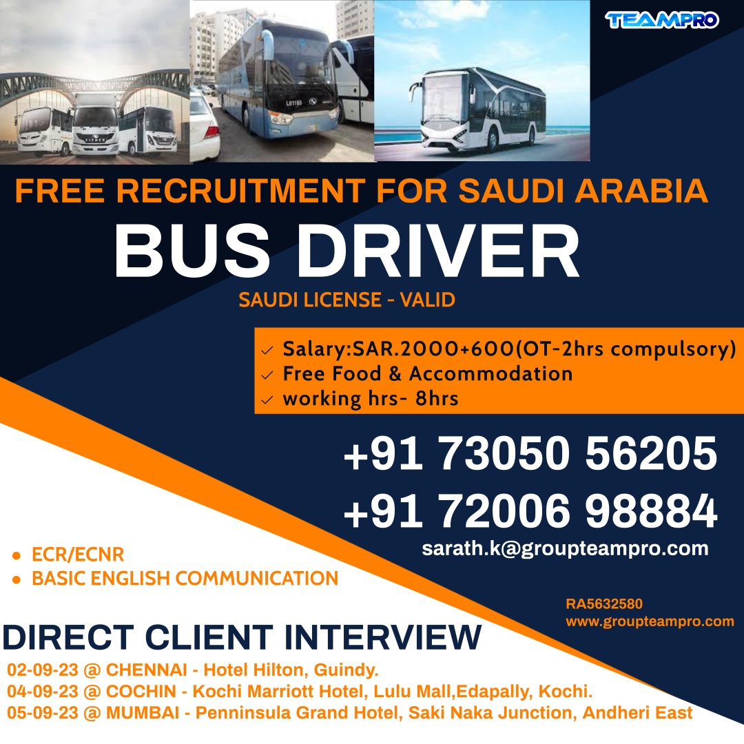 Urgent bus driver job Saudi Arabia - Free recruitment