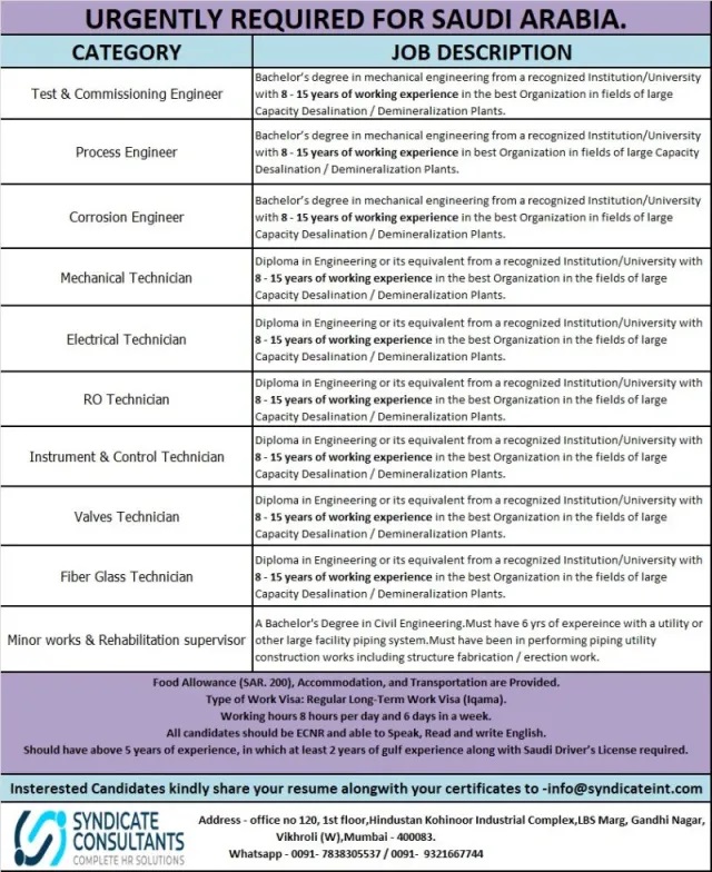 Urgently required for Saudi arabia