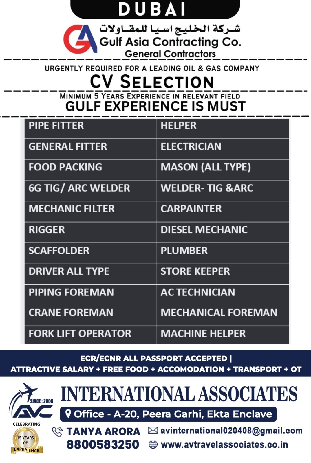 Gulf Asia Contracting Company Dubai vacancies - Large Recruitment.