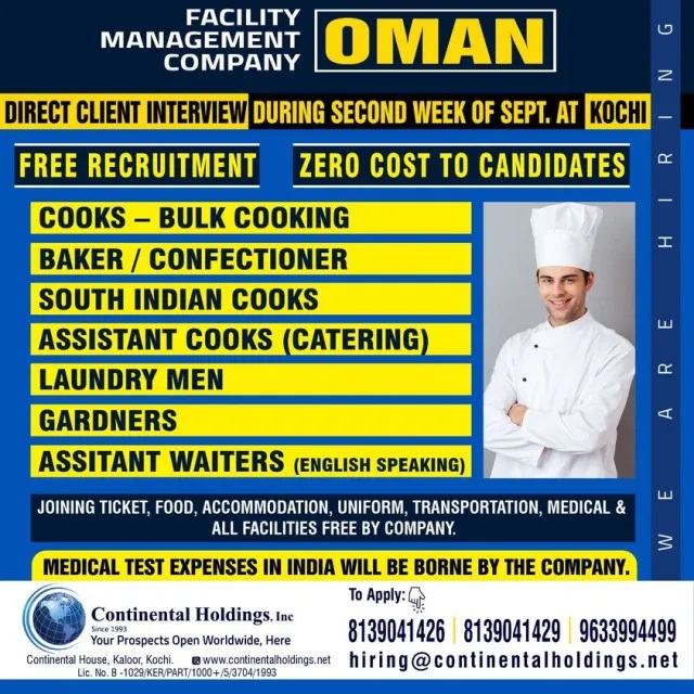 Email : hiring@continentalholdings.net / Contacts : 8139041426, 8139041429, 9633994499