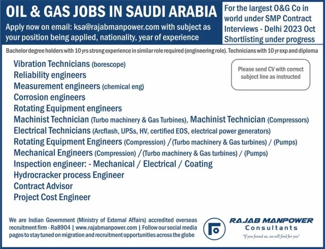 Oil and gas Jobs in Saudi Arabia 2023 - Under SMP Contract