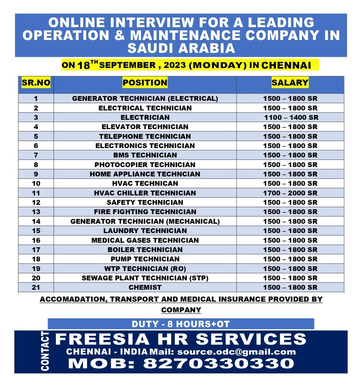 Qualifed in respective discipline and all Candidates having relevant experience in similar industry need to apply. 08 hours duty + OT