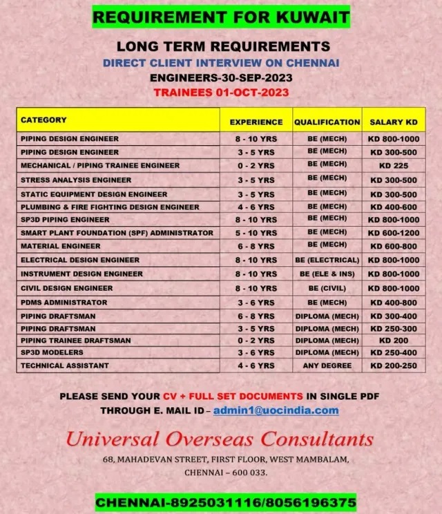 Kuwait job vacancy for Indian - Long Term Project