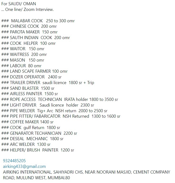 Disclaimer:- GCCWALKINS have no involvement in any recruitment process, This website just sharing job vacancies & interviews from various sources. Applicants are advised to research the bonafides of the prospective employer independently. We do NOT endorse any requests for money payments and strictly advice against sharing personal or bank related information. If you suspect any fraud or malpractice, email us at gccwalkins@gmail.com